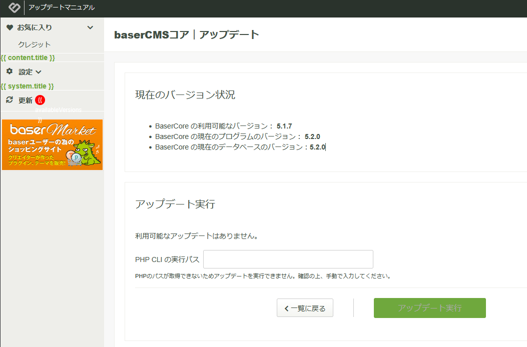 baserCMS 5.2.0にバージョンアップをした際、戻ってきた画面でレイアウトが崩れ、その後ログアウトしました。